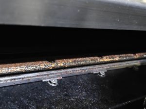 | 问题一,导轨锈蚀。导致切割平台无法正常运行。问题二,各个部位的电子元件被水汽腐蚀,出现各种问题,开机后各种烧毁。问题三,激光器普遍能量衰减和无法正常开机。问题四,切割镜片全部积灰,需要更换。下附图: | |||||